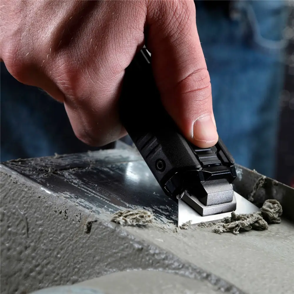 Desempenha todas as funções de um raspador e de uma faca utilitária, tudo numa única ferramenta.