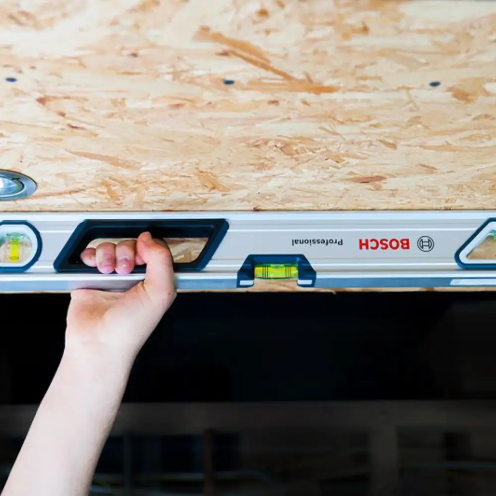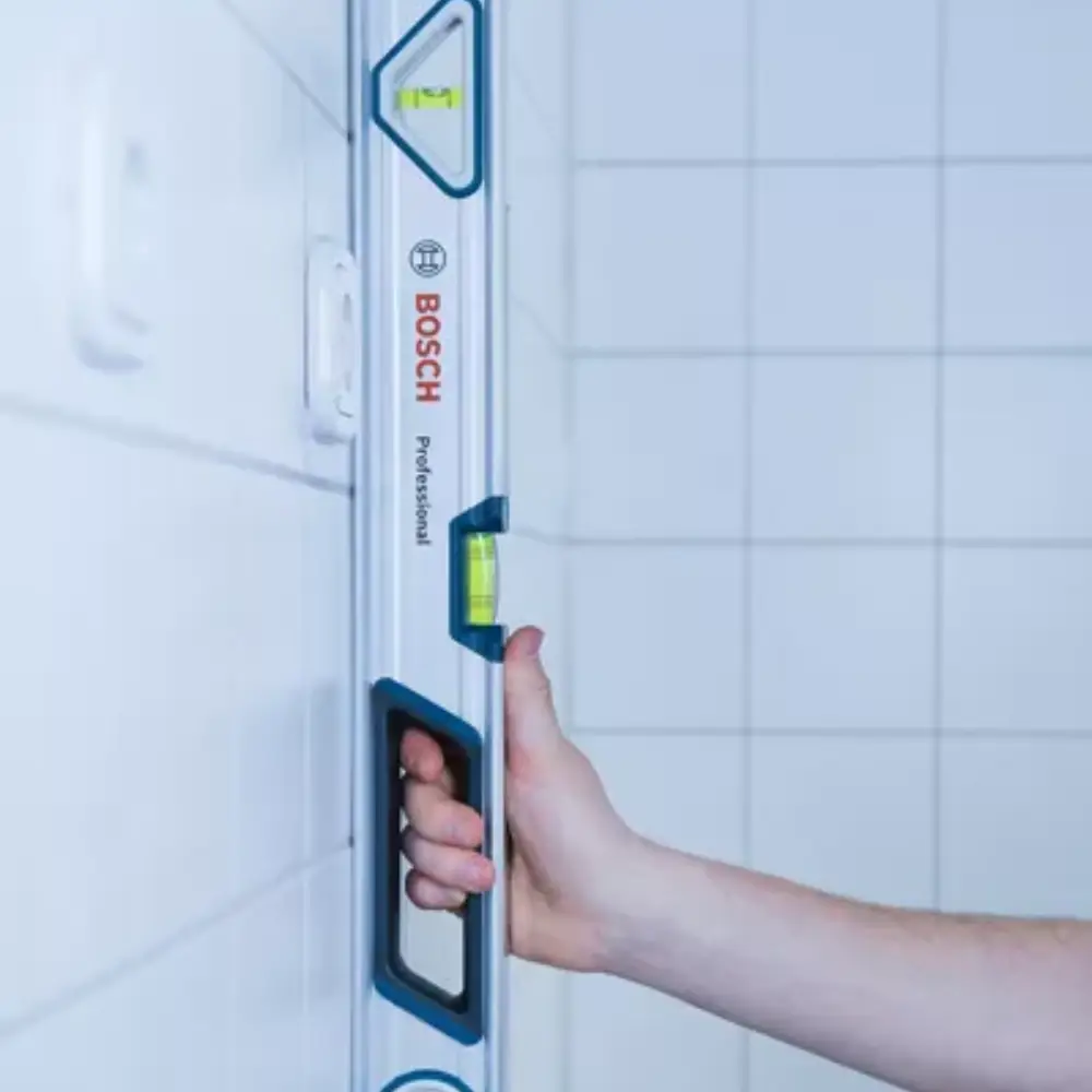 Nível de Bolha Premium com Pega 60 CM Bosch concebido para uma leitura fácil a partir de múltiplas posições.
