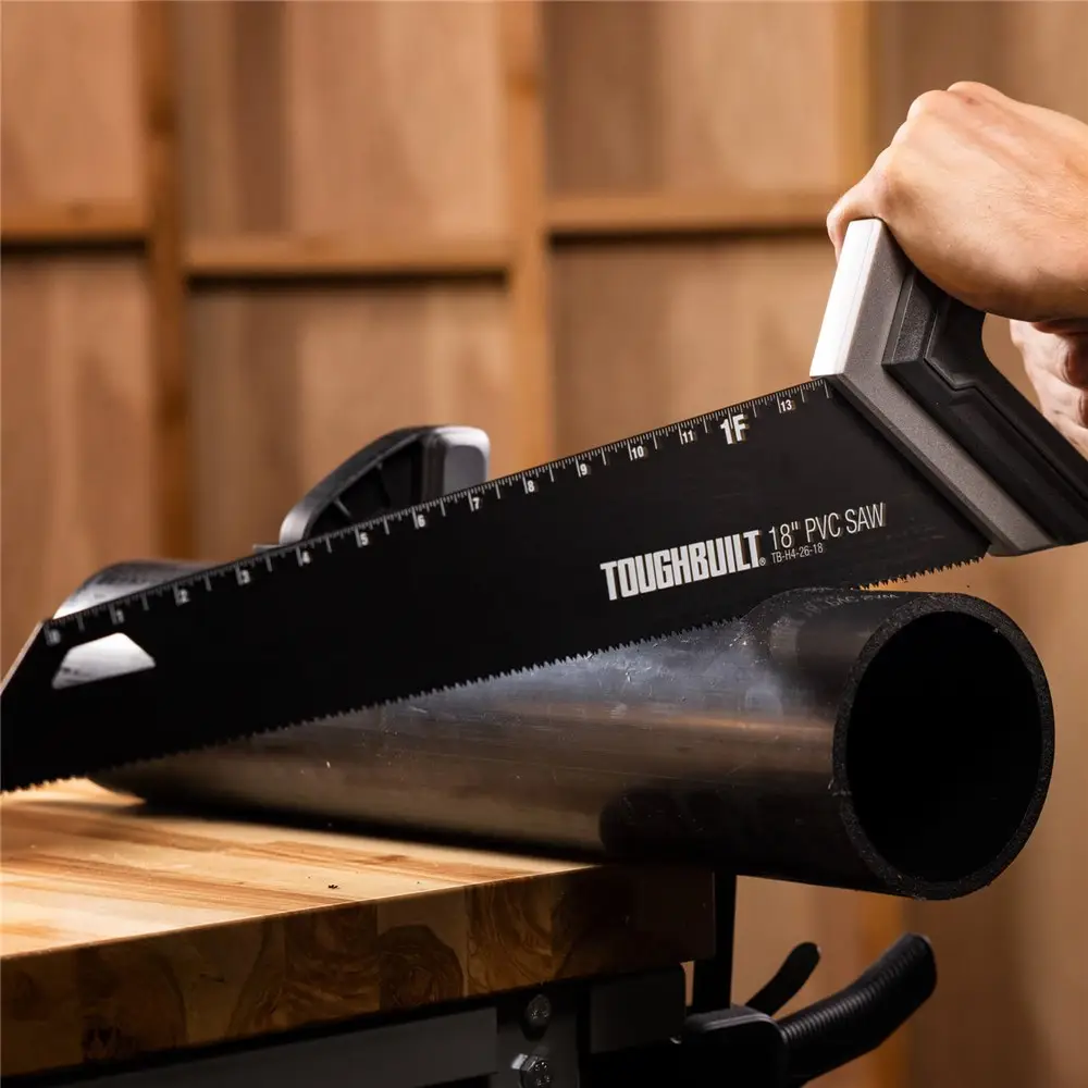 A Serra de Mão para PVC 45cm ToughBuilt foi concebida para ser a serra mais eficiente e optimizada para o corte de substratos plásticos!