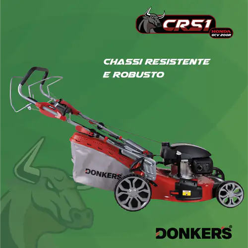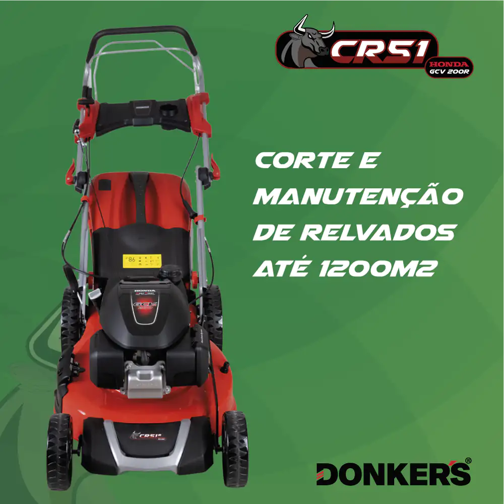 Corta Relva Gasolina Donker’s CR 5em1 Honda c/ Tração, fiável motor de 201cc para resultados de corte uniformes em relvados irregulares e de grandes dimensões.