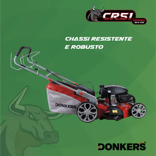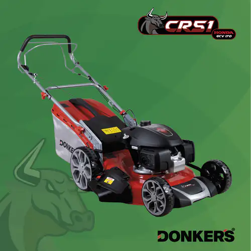 Corta Relva Gasolina Donker’s Honda CR 5em1 c/ Tração, motor de 166cc e regulação central da altura de corte em 6 posições diferentes para resultados de corte uniformes em relvados irregulares e de grandes dimensões
