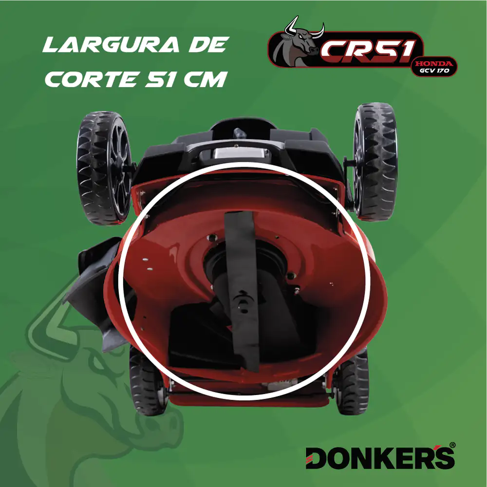 A largura de corte do Corta Relvas Donker’s é de 51cm.
