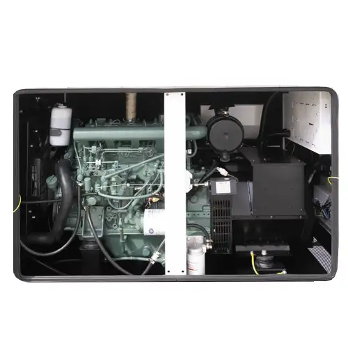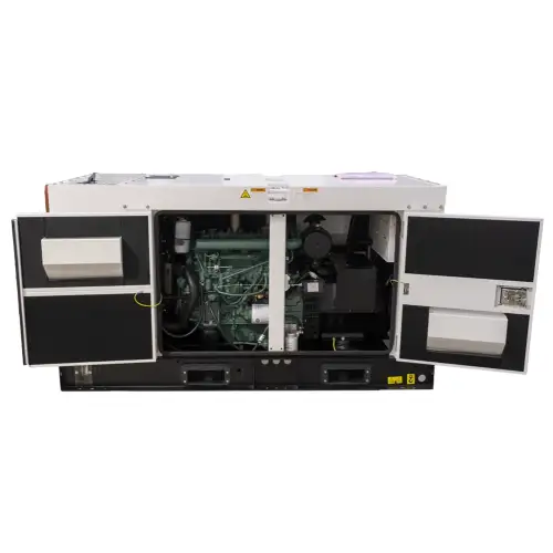 El generador está equipado con un fiable motor diésel de 4 cilindros, turboalimentado y refrigerado por agua, que garantiza una alta durabilidad y un excelente rendimiento. Con una cilindrada de 2545 cc y una potencia máxima de 38,8 CV, el motor proporciona una potencia constante incluso en situaciones de carga exigentes, manteniendo un régimen de revoluciones estable a 1500 RPM. El sistema de combustible mecánico ofrece fiabilidad y un mantenimiento sencillo. El motor cumple con la clase de emisiones Tier II, integrándose en los estándares modernos de eficiencia ambiental.