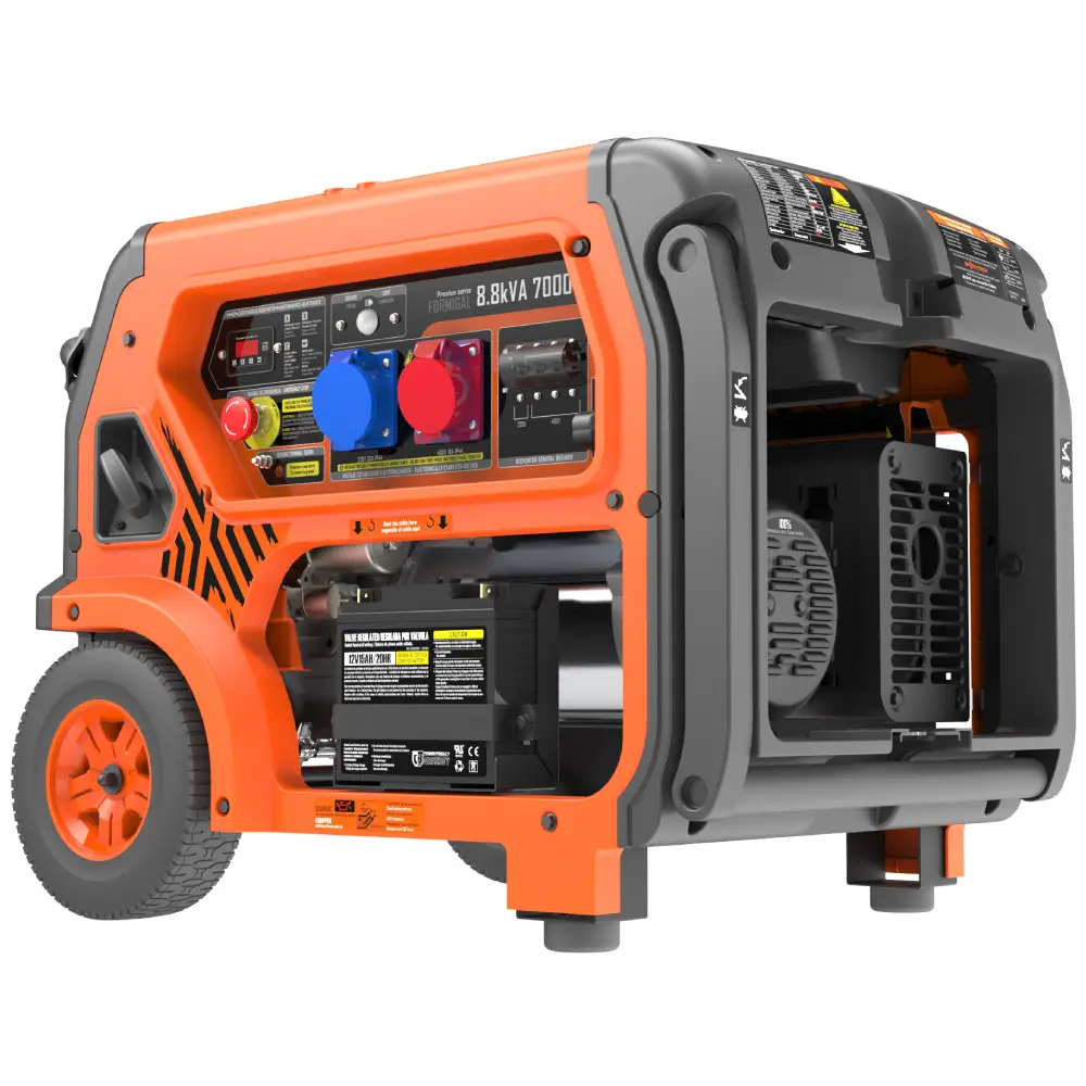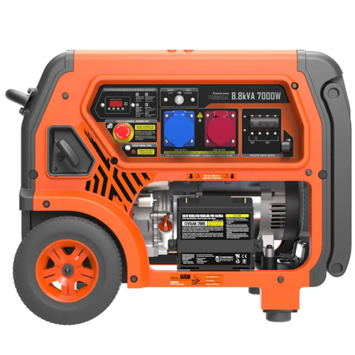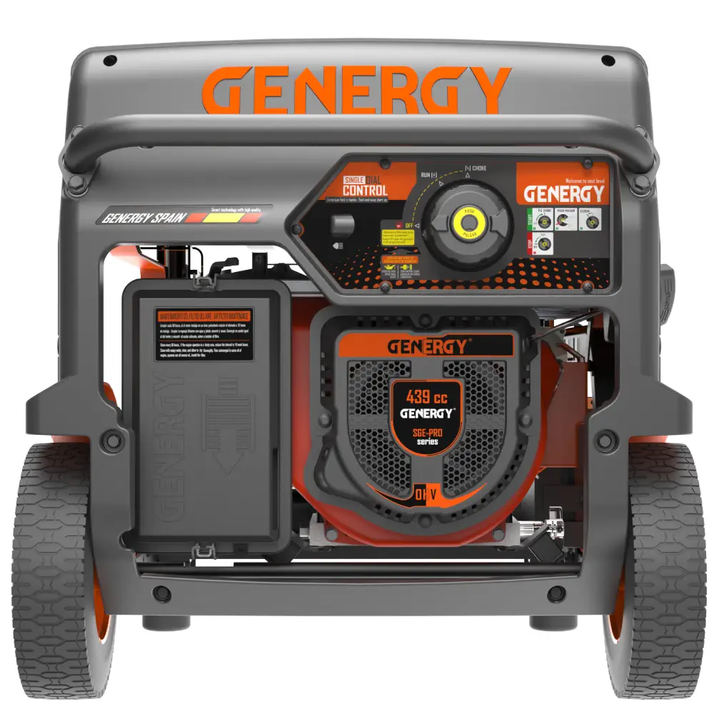 Generador Premium Genergy Formigal de 230/440 V con un diseño innovador y moderno, equipado con un motor profesional de 8,8 kVA y 7000 W que ofrece alto rendimiento y fiabilidad.