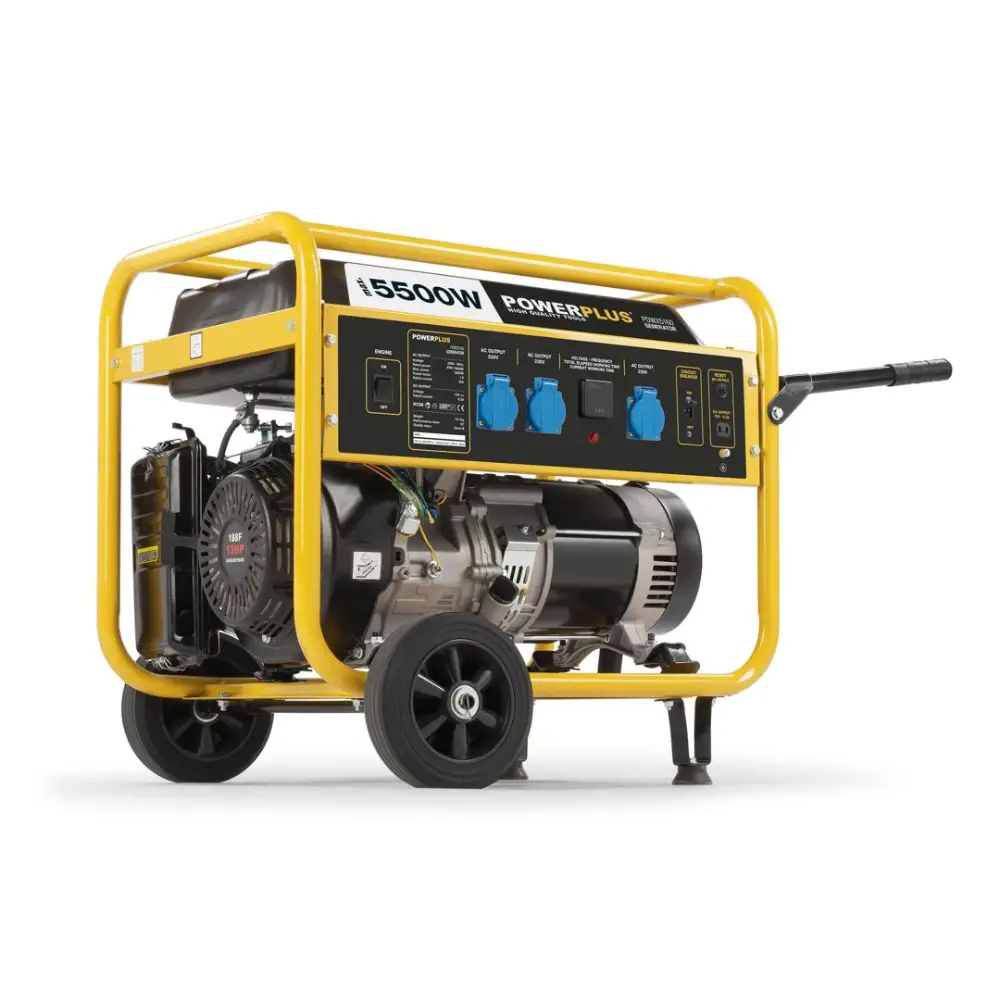 O gerador a gasolina Powerplus AVR 5500 W é compacto, resisitente e fácil de transportar.