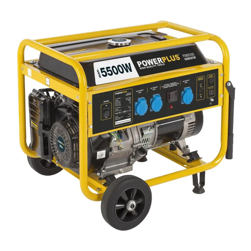 Com uma potência máxima de 5500W, o gerador a gasolina Powerplus com AVR assegura a energia necessária para alimentar a maioria dos aparelhos e ferramentas elétricas.