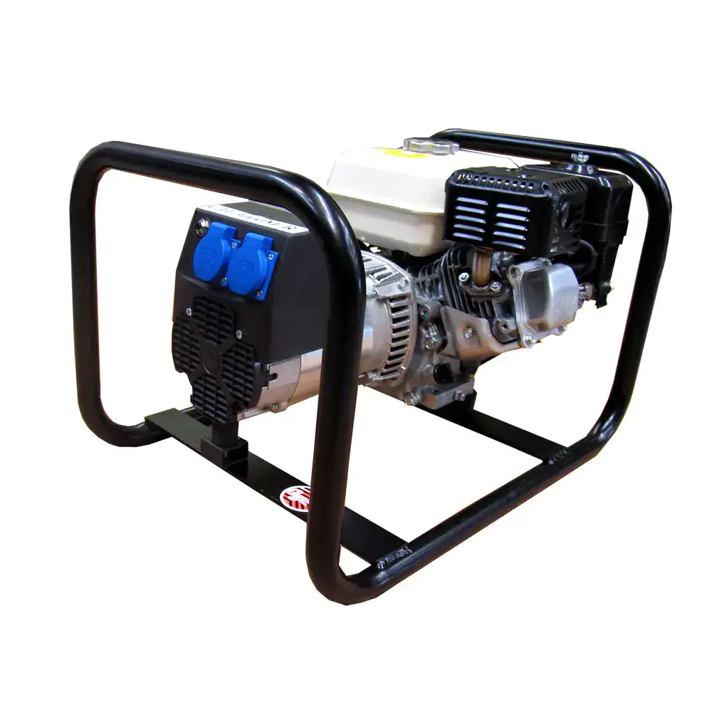 Este gerador está equipado com um Motor 4T G-160 da Honda, com uma cilindrada de 163 cc e uma potência de 5,5 HP, o que lhe confere robustez e fiabilidade no arranque e funcionamento contínuo. O motor é refrigerado a ar e é acionado por arranque manual, o que significa que a ignição do motor é feita puxando uma corda, sem necessidade de bateria ou sistema elétrico auxiliar.