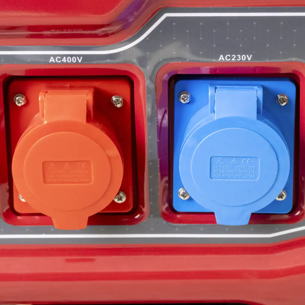 Em termos de desempenho, este gerador na corrente trifásica (400V) oferece uma potência nominal de 7.5 kVA e uma potência máxima de 8.2 kVA. Por outro lado na corrente monofásica (230V) conta com uma potência nominal de 2.5 kVA e uma potência máxima de 2.8 kVA. Proporciona energia suficiente para alimentar equipamentos de maior consumo. O gerador (monofásico 230V / trifásico 400V) opera com frequência de 50/60 Hz e dispõe de regulação automática de voltagem (AVR), um sistema que ajuda a manter a tensão estável e a proteger os equipamentos ligados contra flutuações elétricas.