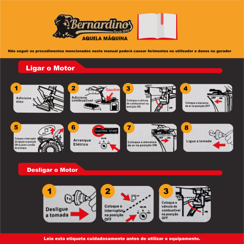 O robusto motor entrega a potência máxima de 6 000W e contínua de 5 600W. O depósito de combustível com capacidade para 25L garante o desempenho contínuo do motor.