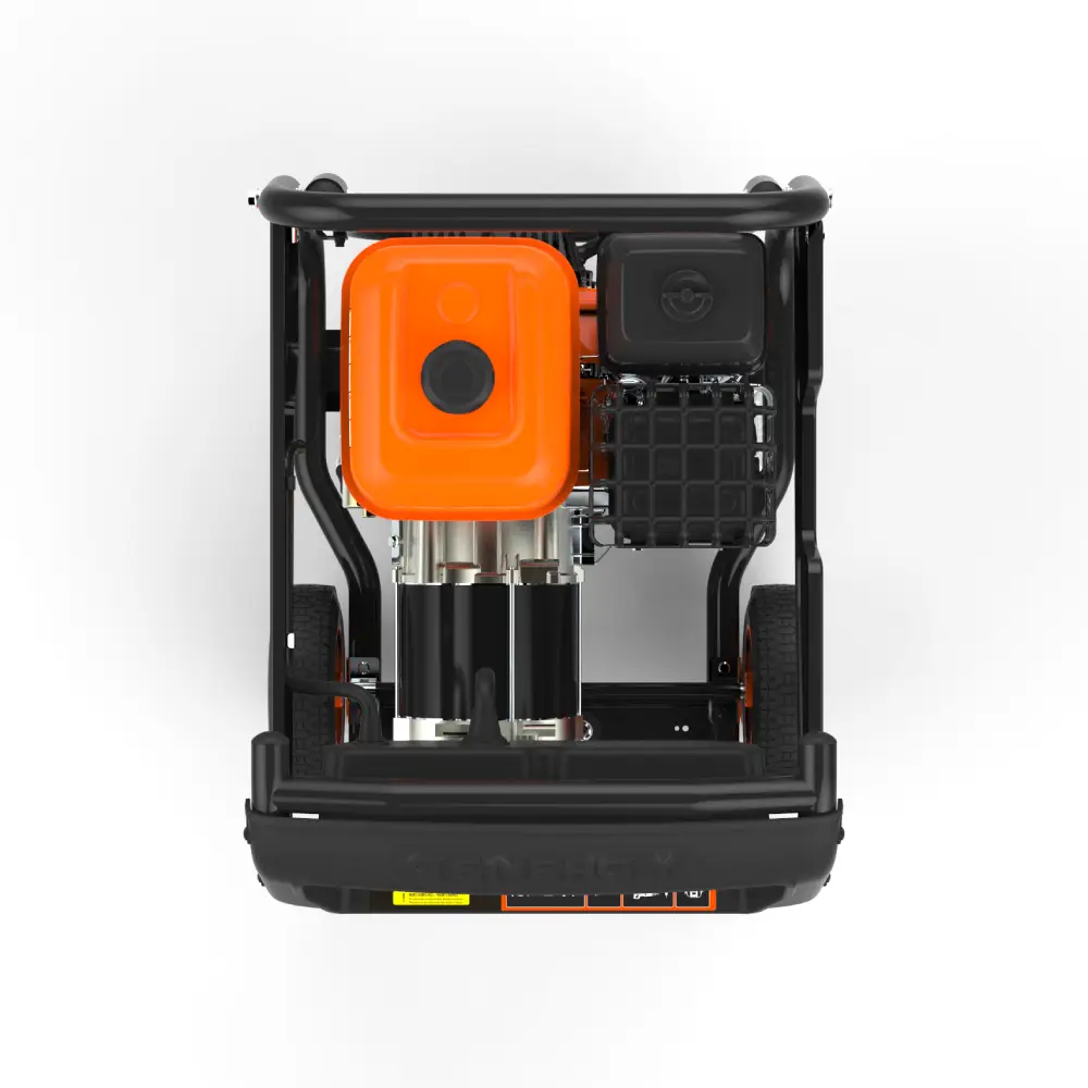 Com um depósito de 6 L e consumo entre 2 a 3 L/h, oferece autonomia de 2 a 3 horas. Estrutura com rodas de 10″ facilita o transporte.