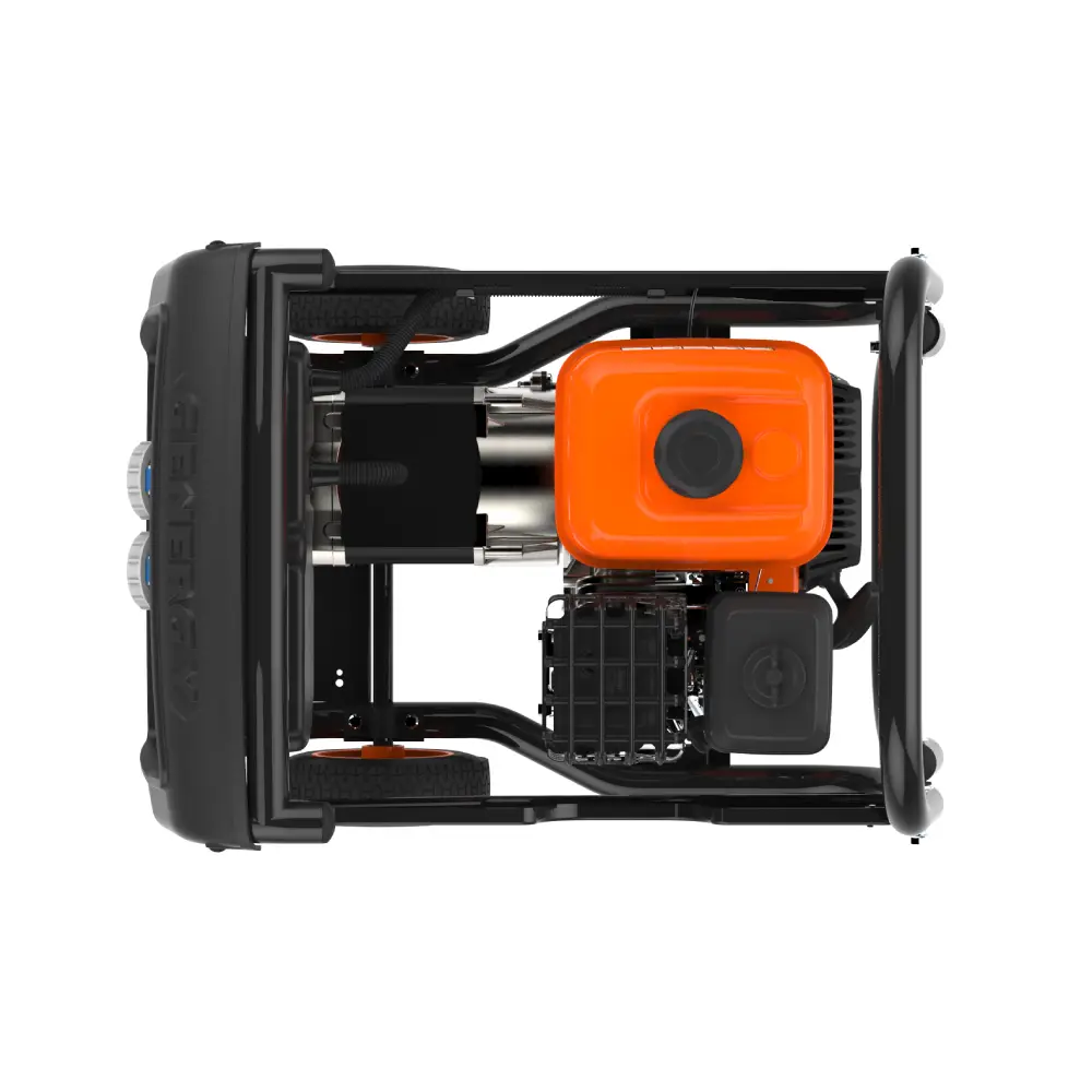 Tem duas tomadas IP67 de 16 A, bastidor com rodas integradas de 8″ e tanque de 2,6 L, oferecendo autonomia de 2 a 3,25 horas consoante a carga.