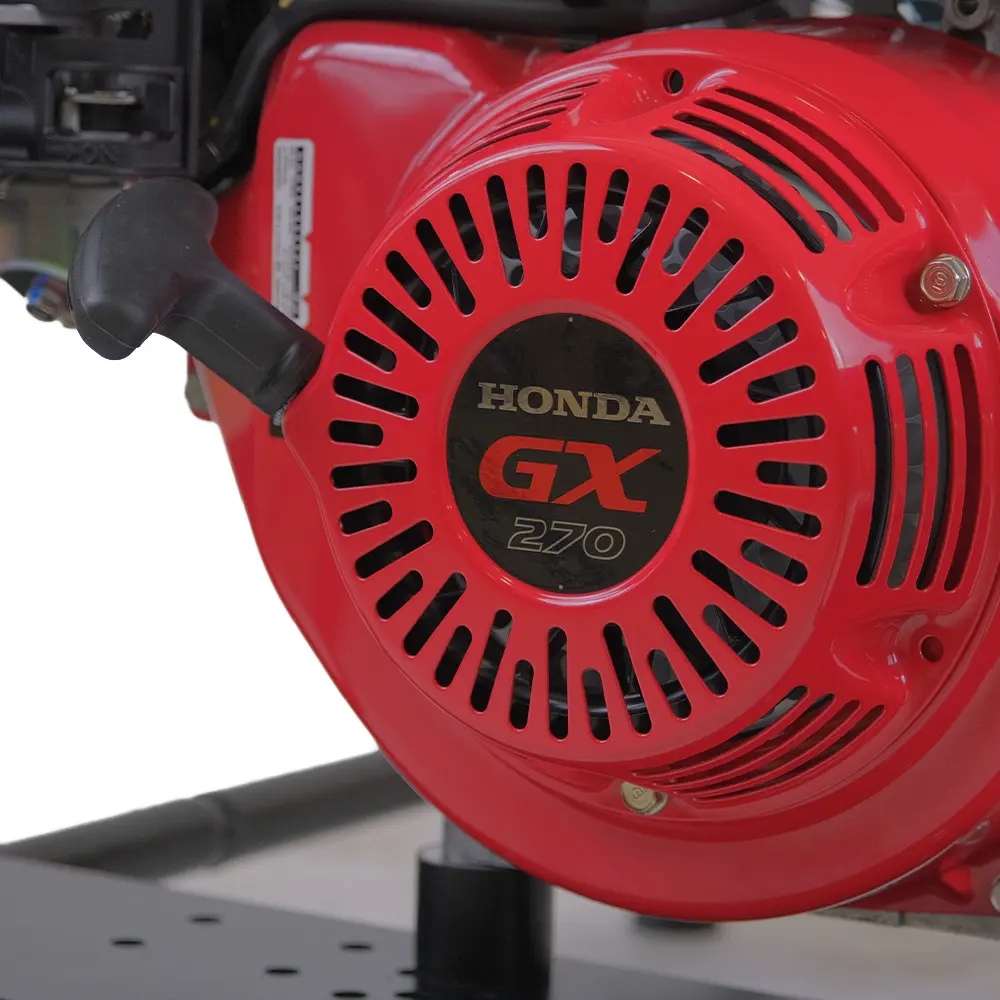 Equipado com um motor Honda GX-270 de 4 tempos, o Gerador Campeón GH-5000M oferece uma potência de 9 cv e funciona a 3.000 rpm.