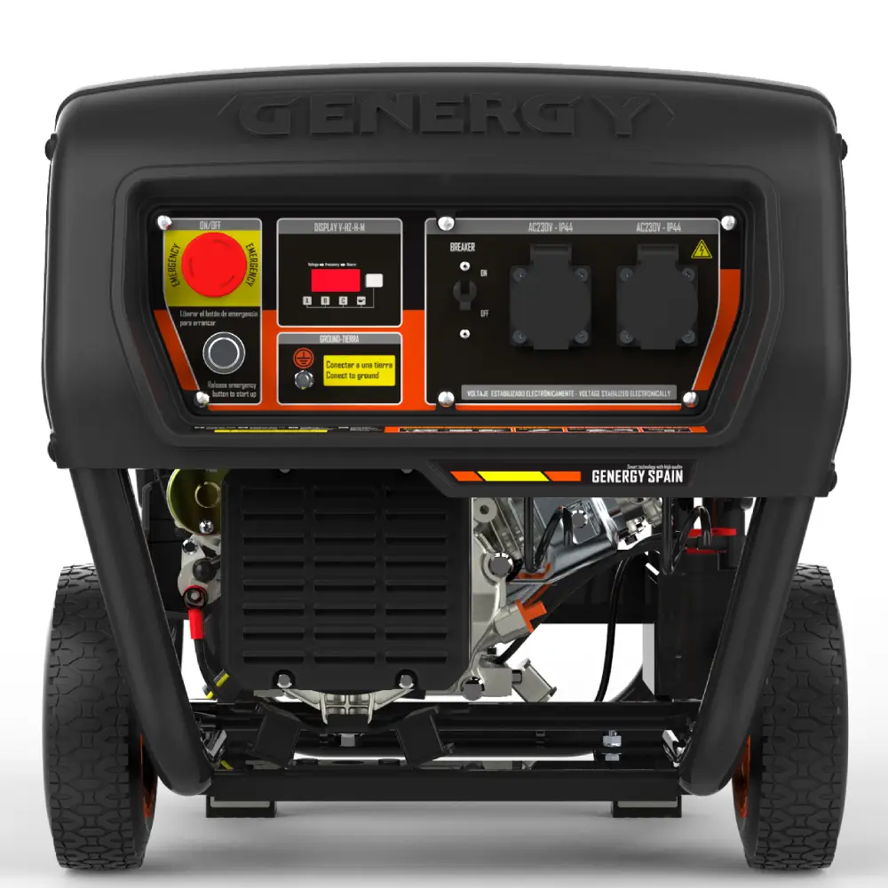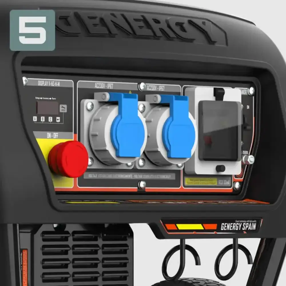 Tem um painel inteligente que mostra a voltagem (V), a frequência (Hz) e as horas de funcionamento, e alerta também o utilizador sobre as tarefas de manutenção necessárias.
