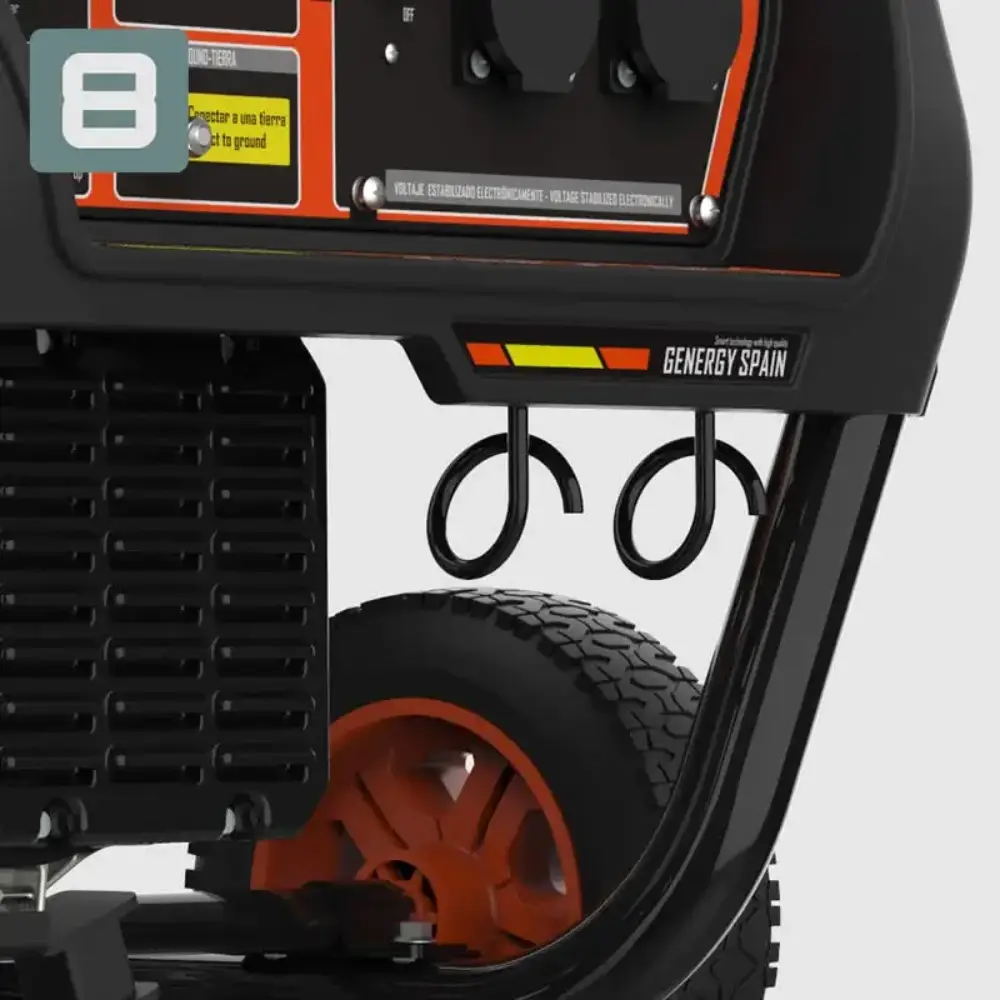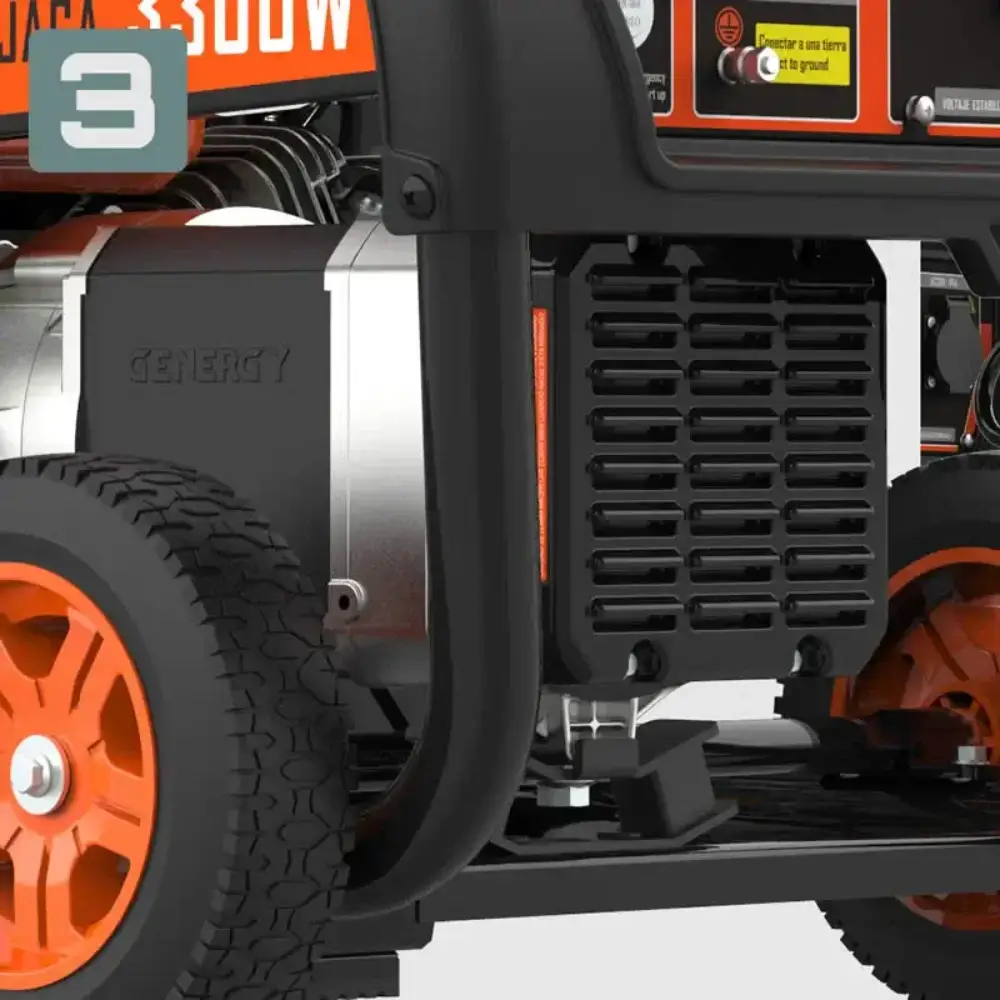 O Gerador Jaca tem um novo design composto por 2 rodas e pega para um fácil transporte, manuseamento e armazenamento do gerador.