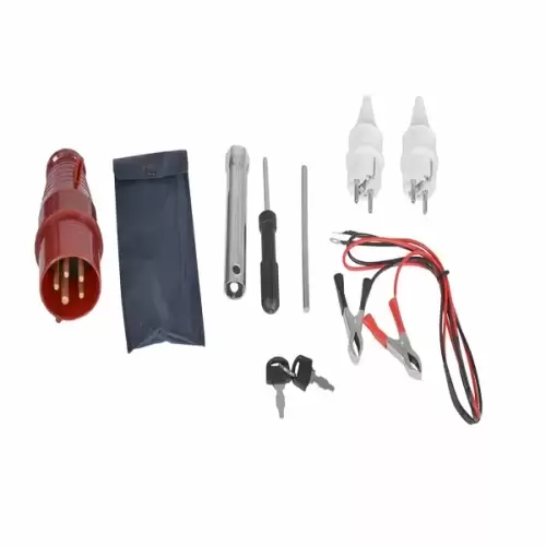 2 tomadas de 230 V AC, 1 conexão de 400 V e 1 tomada de saída de 12 V DC.