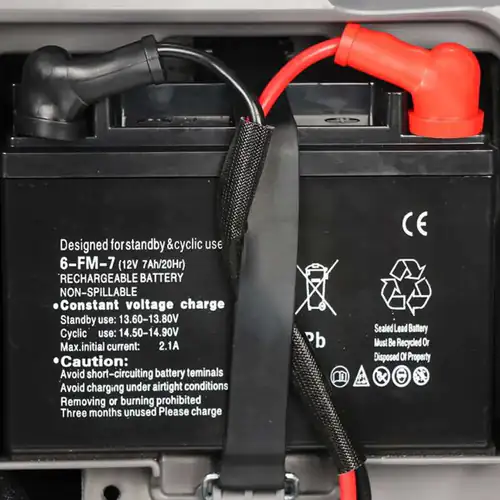 • Função: Fornece a energia necessária para o motor de arranque, permitindo assim ligar o gerador rodando apenas a chave ou premindo um botão, sem necessidade de puxar o cordão.