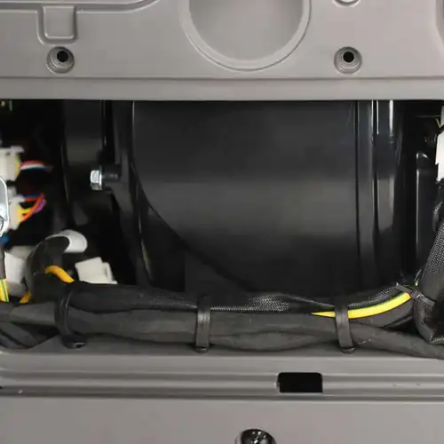 3. Cablagem e Chicote Elétrico (Parte Inferior) - O conjunto de fios protegidos por fita e braçadeiras que percorre a base.