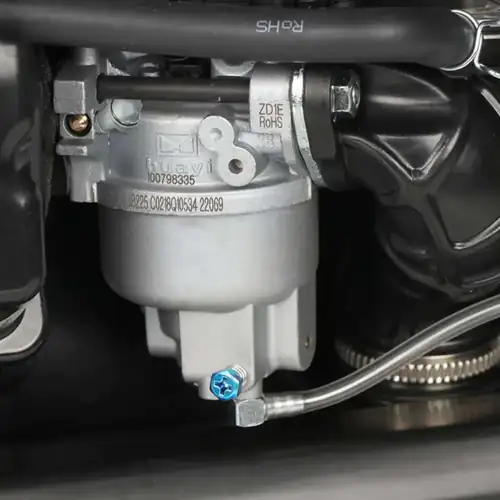 • Função: É o responsável por misturar o ar com a gasolina na proporção correta para a combustão. Note o tubo preto reforçado que transporta essa mistura para o cilindro.