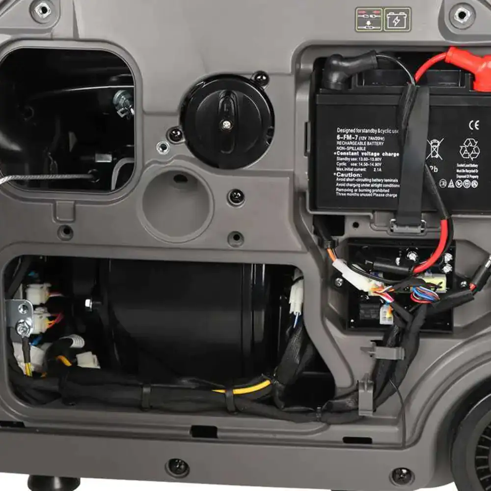 Além do arranque elétrico, conta com uma corda de arranque manual que permite ligar o motor do gerador manualmente através da tração da corda, servindo como alternativa caso a bateria do arranque elétrico esteja sem carga. O escape (silenciador) expulsa os gases resultantes da combustão do motor para o exterior e reduz o ruído operacional do gerador.