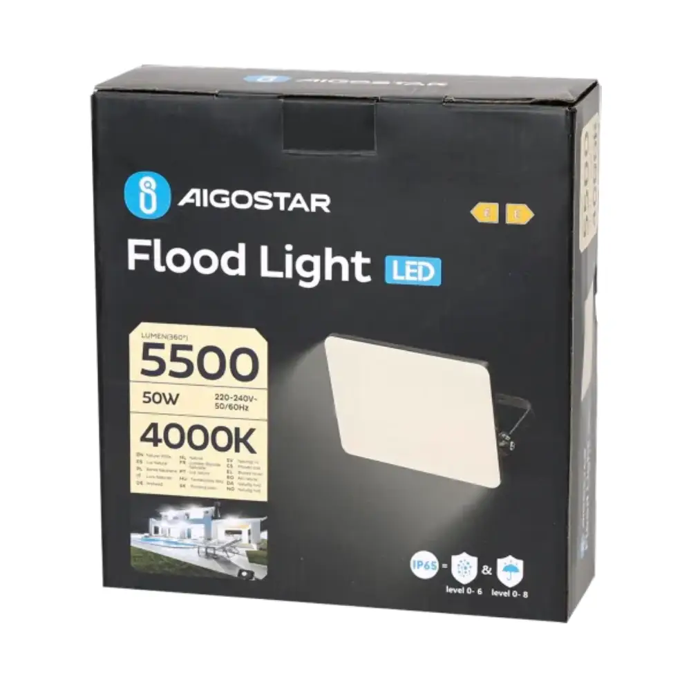 Este Projetor LED Aigostar 50W 4000K é perfeito para iluminar grandes áreas ao ar livre com eficiência energética e alta resistência!