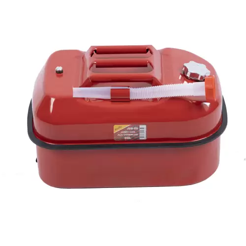 Depósito / jerrican homologado para hidrocarbonetos e combustíveis com capacidade de 20 litros. A sua estrutura única proporciona alta estabilidade durante o transporte, garantindo que não é derrubado facilmente. Construído em aço e medindo 450 x 310 x 250 mm, é uma solução de confiança para armazenamento e transporte de líquidos inflamáveis.