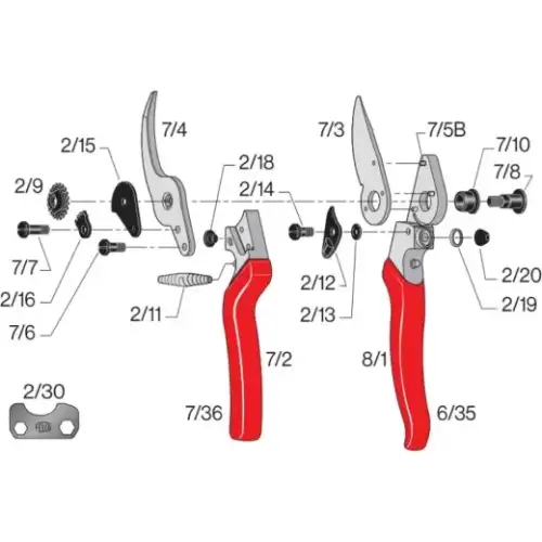 Todas las piezas son reemplazables, desde la cuchilla y el resorte hasta el tornillo más pequeño, para una mayor durabilidad y un mínimo desperdicio de las tijeras.