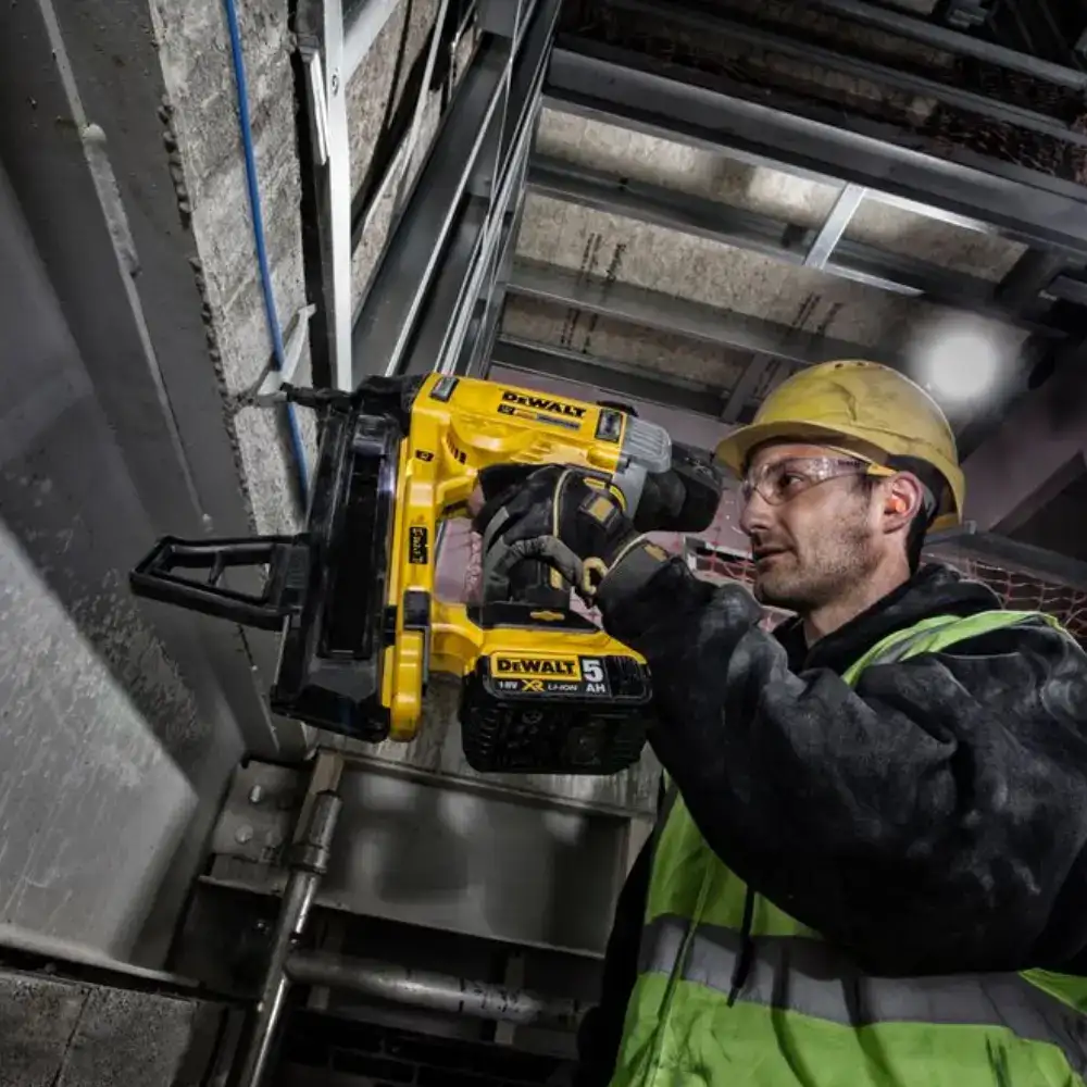 A Pregadora de Betão a bateria da DeWALT tem um funcionamento sem gás que elimina a necessidade de células de combustível e fornece uma alternativa consistente e potente que funciona com a bateria DEWALT 18V XR (incluída).