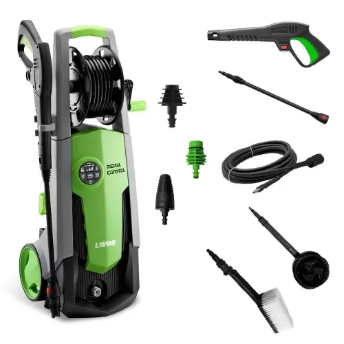 Lavadora de Alta Pressão Lavor 180Bar de fabrico Italiano com 3 níveis de pressão e vasto conjunto de acessórios ideal para utilizações semi profissionais frequentes de superfícies até 100m2.