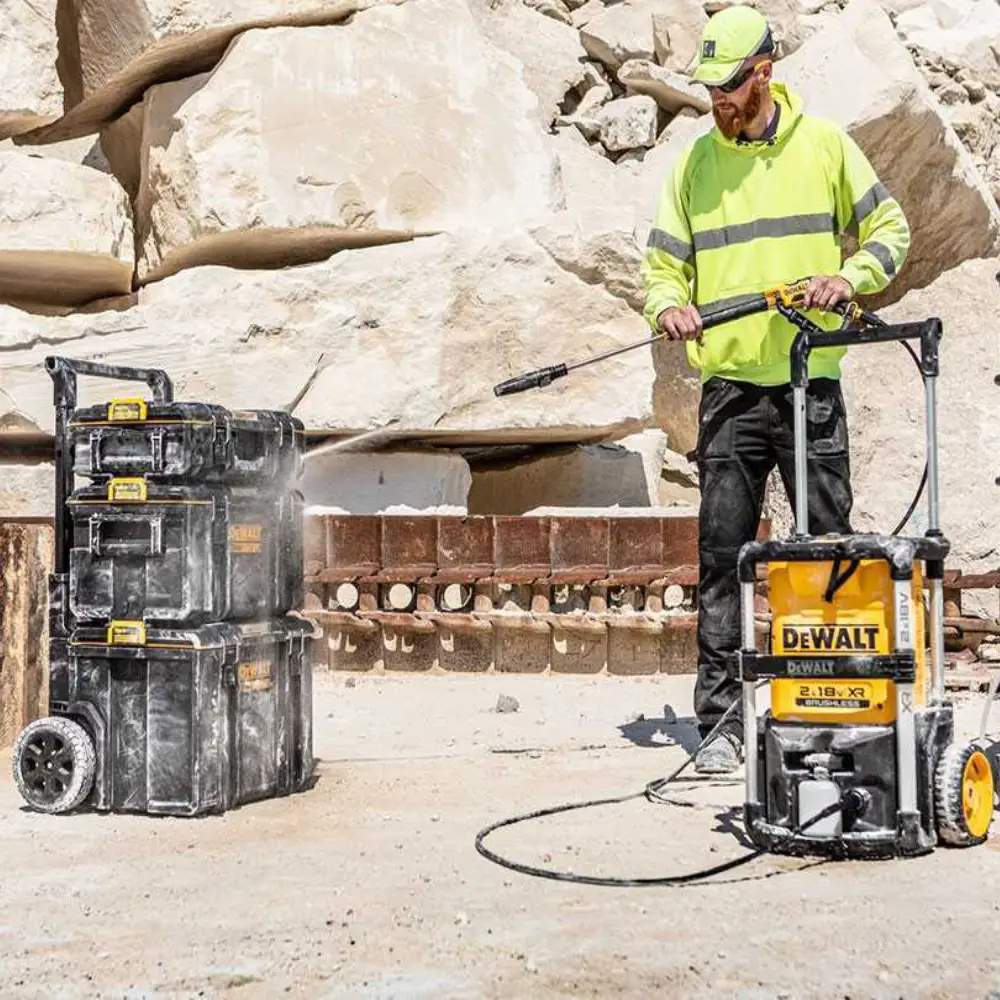 A Lavadora de Alta Pressão XR 2x18V da Dewalt é uma lavadora de alta pressão portátil e sem fios, projetada para oferecer um desempenho poderoso com toda a mobilidade que os utilizadores exigem no dia a dia, seja em casa, na oficina ou na obra. Alimentada por duas baterias XR 18V, esta lavadora totaliza 36V de potência, permitindo realizar limpezas exigentes sem depender de cabos ou ligação à corrente elétrica.