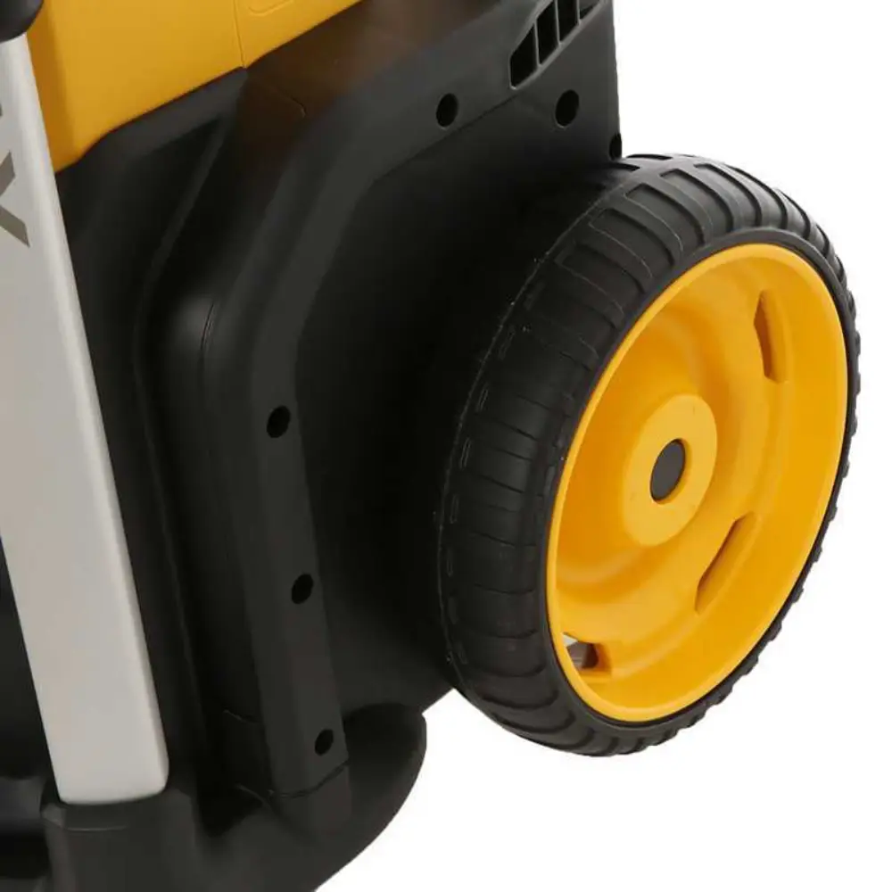 A estrutura da lavadora é resistente e funcional. Apresenta um chassis metálico tipo “roll cage” que protege os componentes e facilita o transporte, juntamente com rodas de grandes dimensões (20 cm) e uma pega telescópica para manobrar facilmente. A mangueira de pressão de 6 metros e os vários acessórios incluídos (como lança, pistola, bico turbo, bico ajustável e reservatório de detergente) tornam-na numa solução completa desde o primeiro uso.
