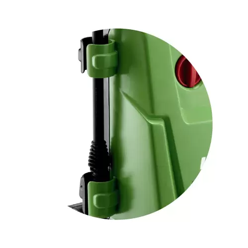 As rodas em borracha resistente e a pega ergonómica facilitam o transporte entre locais e o uso da Lavadora.