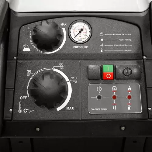 Lavadora Alta Pressão Trifásica de Água Quente 200bar com tanque de detergente embutido de 3L de capacidade para lavagens mais completas.