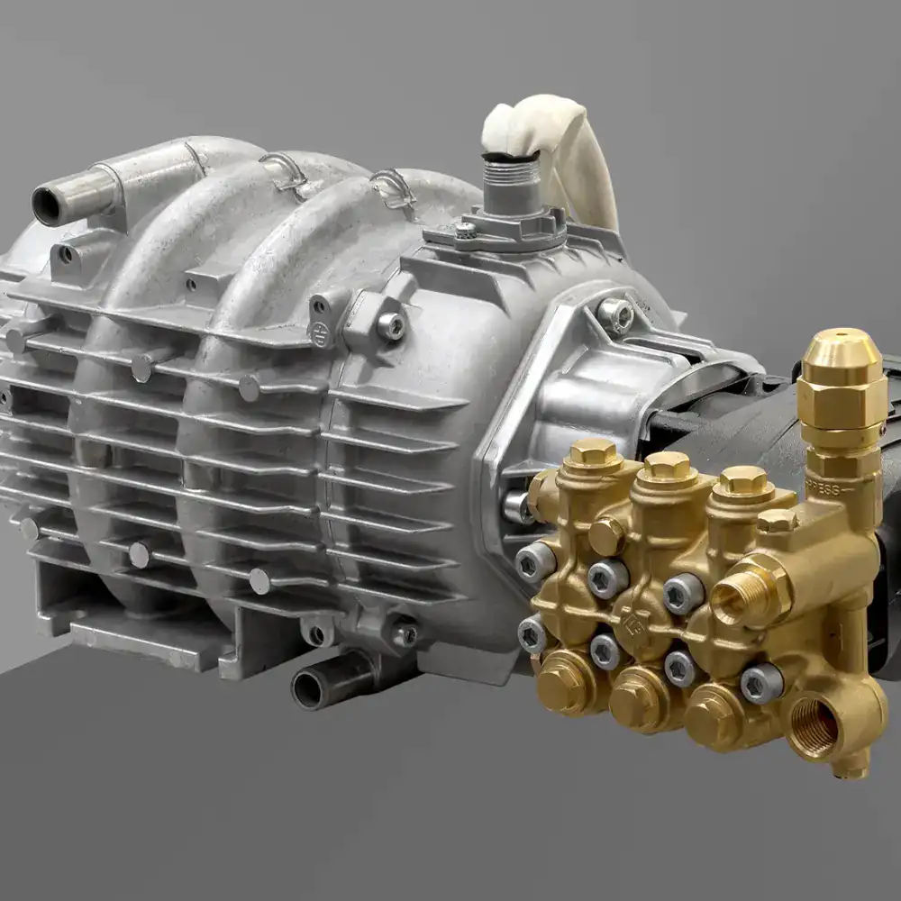 cabeça da bomba linear em latão com válvula de bypass incorporada e os 3 pistões em cerâmica oferecem maior durabilidade contra a corressão e ao desgaste térmico.