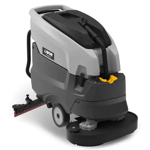 É uma Máquina profissional de lavagem e secagem de pavimentos fabricada para a limpeza profunda de áreas médias e grandes, como armazéns, superfícies comerciais, centros logísticos ou instalações industriais. Este equipamento combina as funções de lavagem, escovagem e aspiração numa única passagem, permitindo desta forma obter pavimentos limpos e secos de forma rápida e eficiente. A produtividade pode atingir cerca de 3200 m² por hora, o que a torna adequada para ambientes onde é necessária uma limpeza frequente e intensiva.