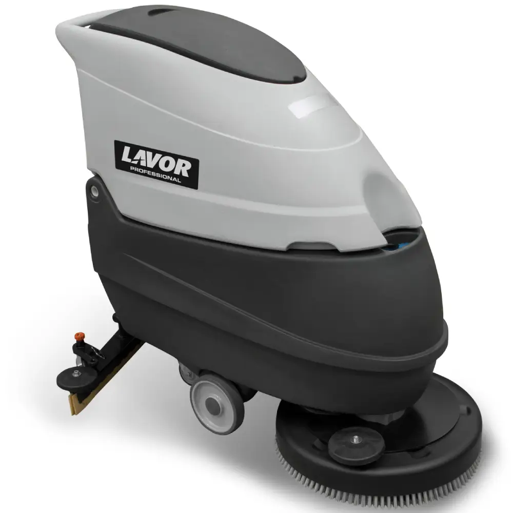 Lavadora (walk-behind) de Piso a bateria Lavor FreeEvo com função de aspirador projetada para limpeza de áreas até 2 000 m². Solução perfeita para limpeza de lojas e pontos de venda, restaurantes, stands de automóveis, ginásios e centros de saúde.