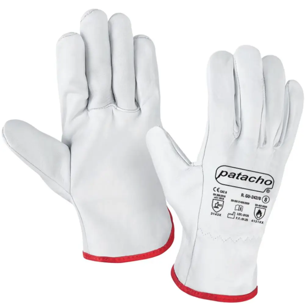 Compostas por um elástico interno que permite ajustar as luvas ao pulso, evitando que a luva escorregue durante os trabalhos e protegendo as mãos contra poeiras. Além disso, o facto das luvas serem em Couro oferecem um maior conforto e respirabilidade às mãos, evitando a transpiração e o desconforto típico das luvas sintéticas.