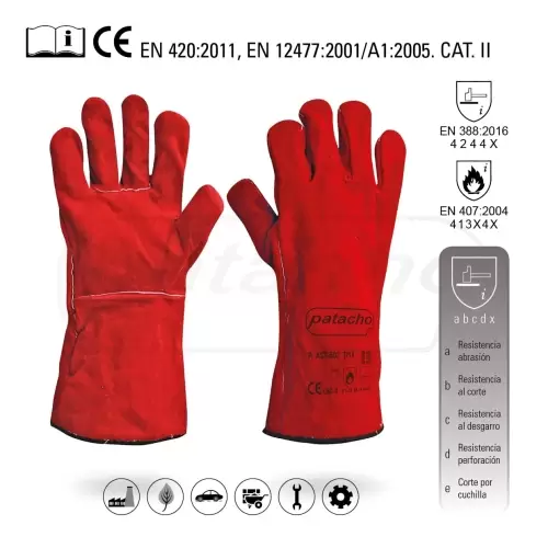 A luva de soldador em couro é almofadada e possui forro de flanela. Com um comprimento total de 40 cm, oferece proteção abrangente. É resistente à abrasão e perfuração, garantindo durabilidade e segurança durante o trabalho de soldagem.