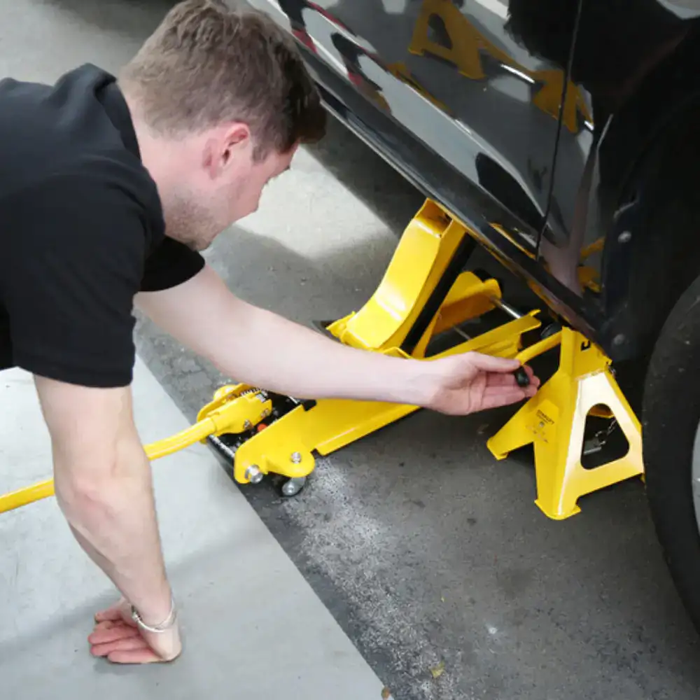 É uma solução de confiança, tanto para profissionais como para utilizadores em contexto doméstico. Este conjunto inclui dois cavaletes com capacidade de carga até 2 toneladas, ideais para suportar veículos de forma segura após a elevação com um macaco.