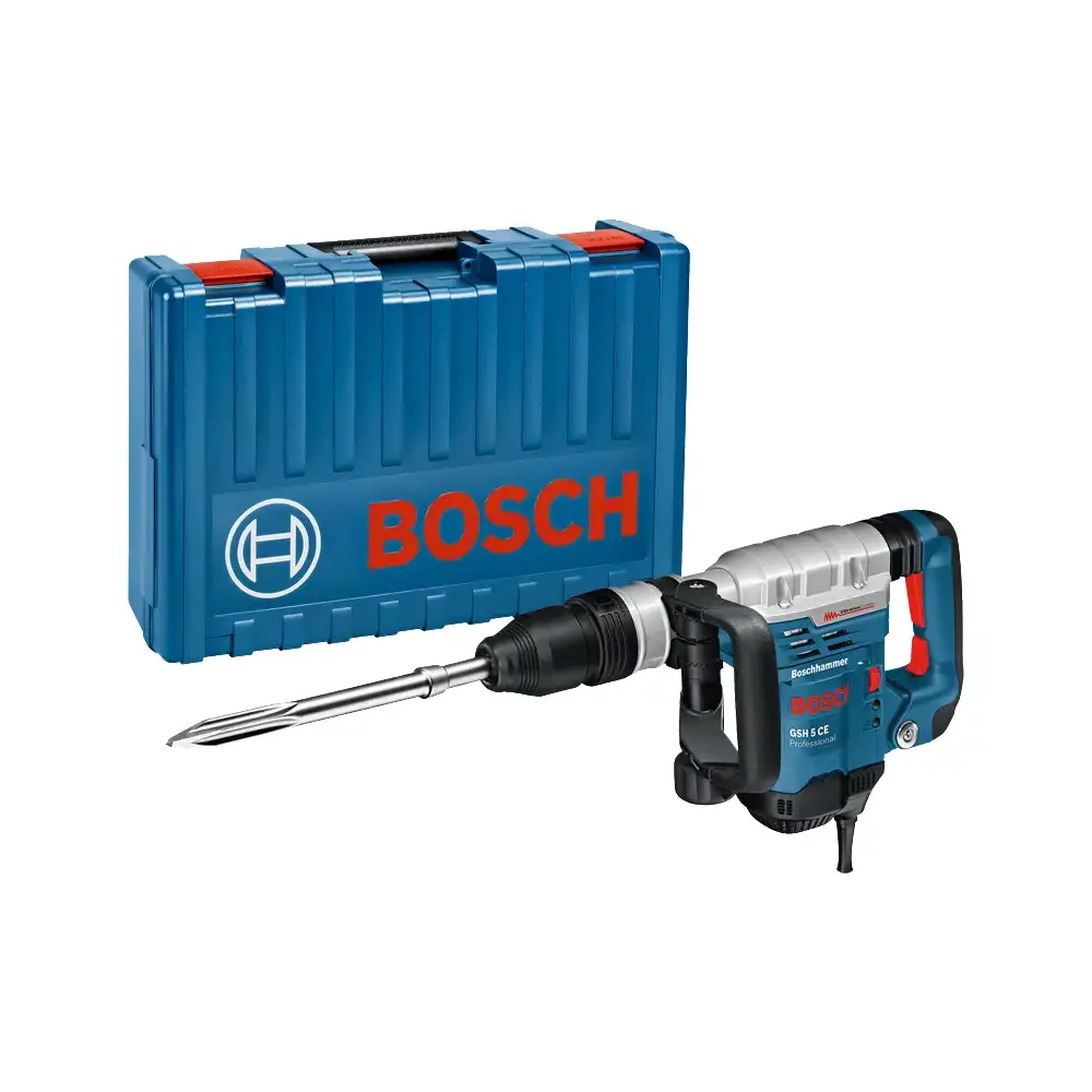 Martelo Demolidor GSH 5 CE Professional da Bosch com um potente motor de 1 150 W e uma energia de impacto de 8.3 J, para uma alta capacidade de demolição.