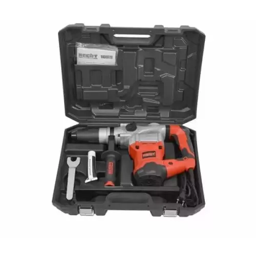 Martelo combinado 1600 watts sds-max combina as funções de uma broca de percussão convencional com a possibilidade de apertar e desapertar conexões parafusadas, mas ao mesmo tempo pode ser usada para facilitar o trabalho de corte usando uma broca ou cinzel adequados. A caixa de duas velocidades em conjunto com o controle eletrônico de velocidade infinitamente variável permite que a velocidade de perfuração seja perfeitamente ajustada ao torque necessário. A broca está equipada com um grampo SDS Plus para troca rápida de ferramentas de perfuração e corte. A alça emborrachada garante uma aderência confortável e firme, enquanto amortece a transmissão de vibrações.