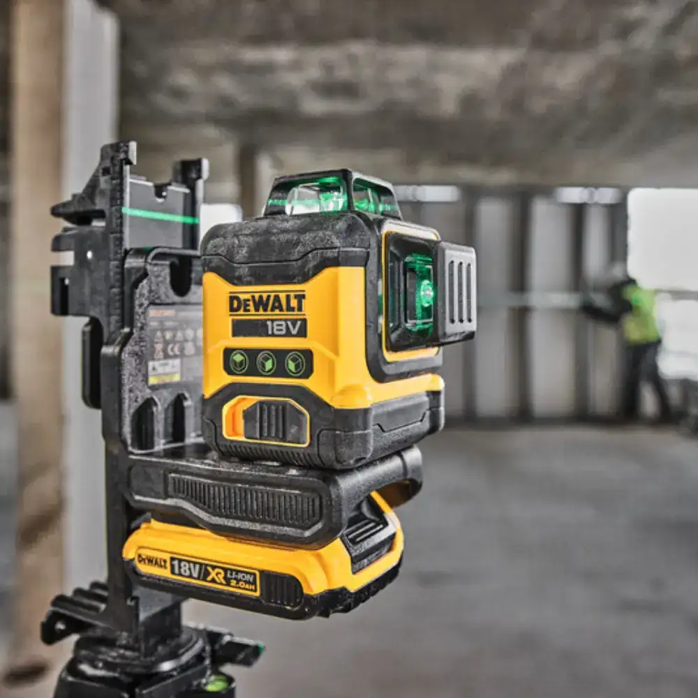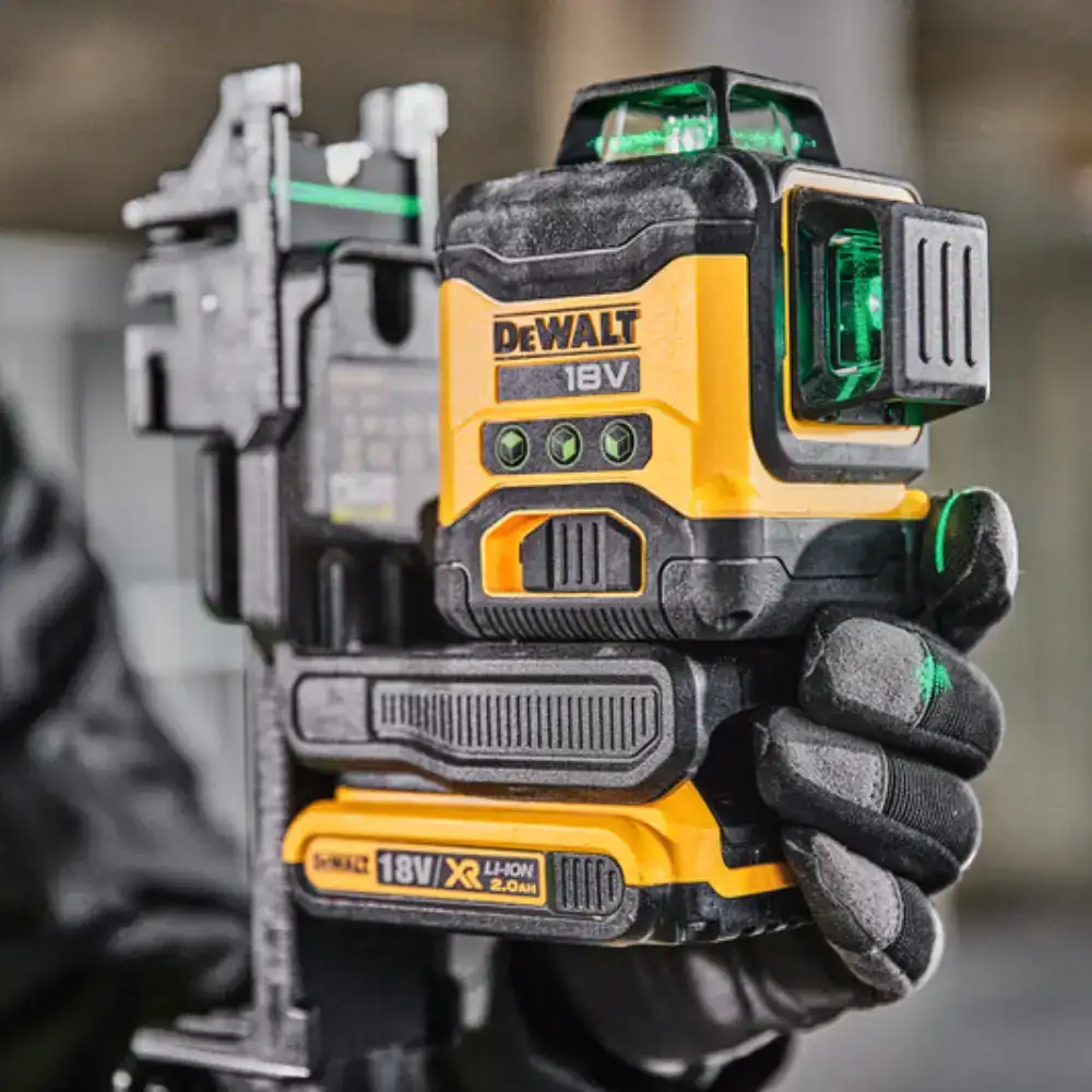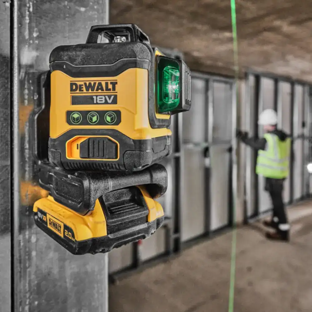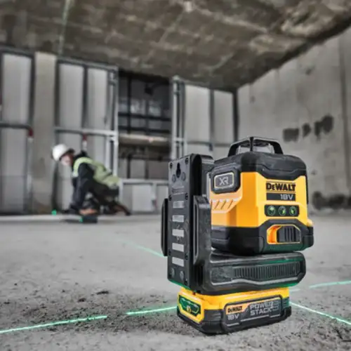• Medidor Laser Autonivelante Verde 3 Linhas 360º Dewalt com compatibilidade total com as baterias da série de ferramentas elétricas 18V XR.