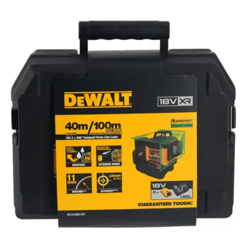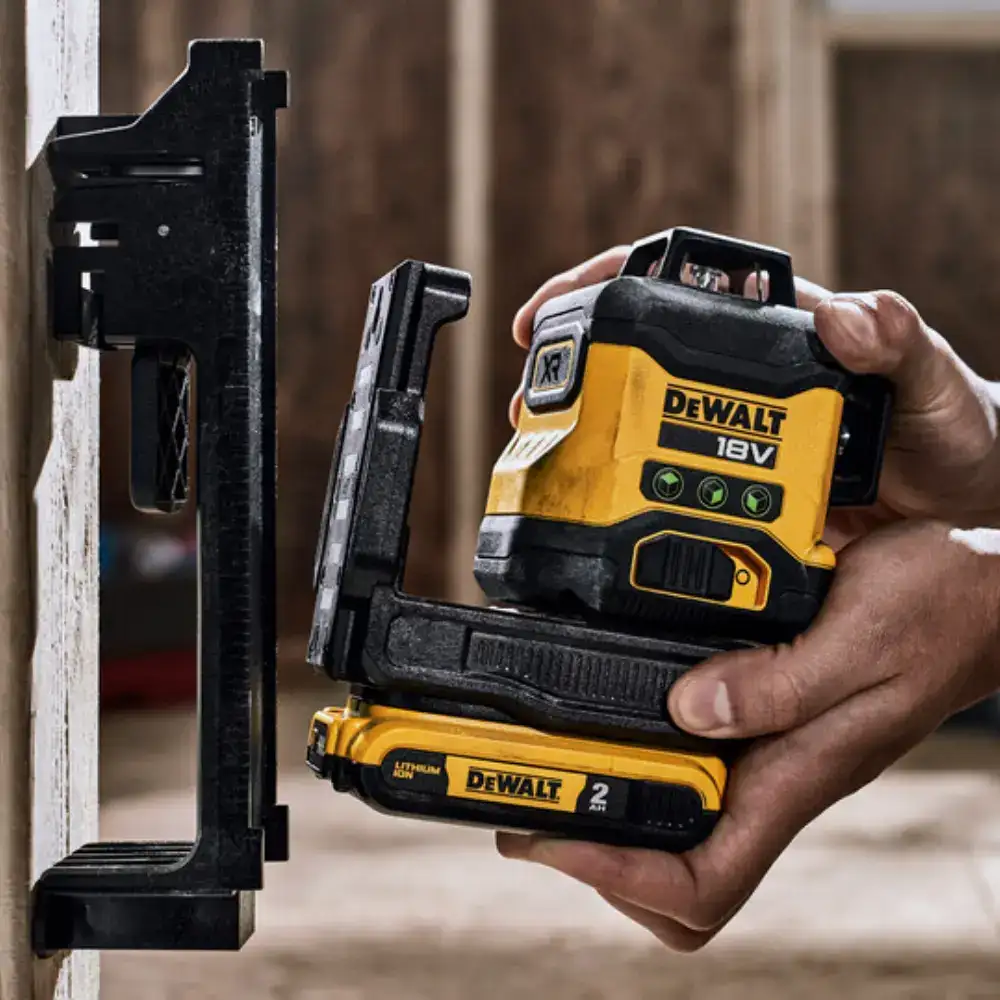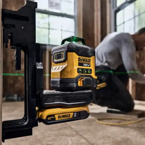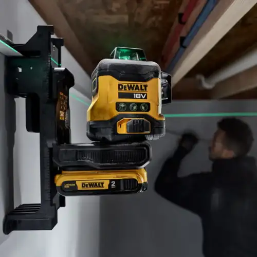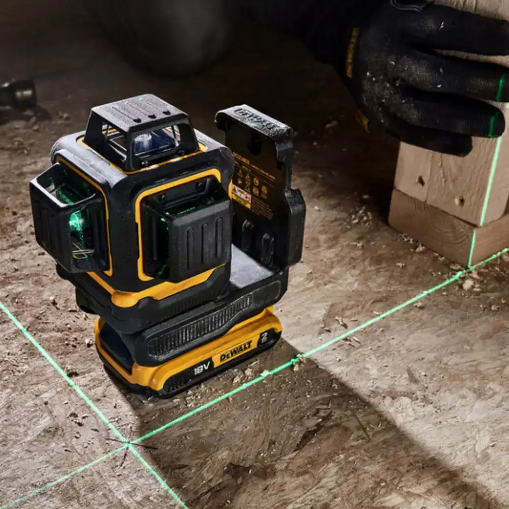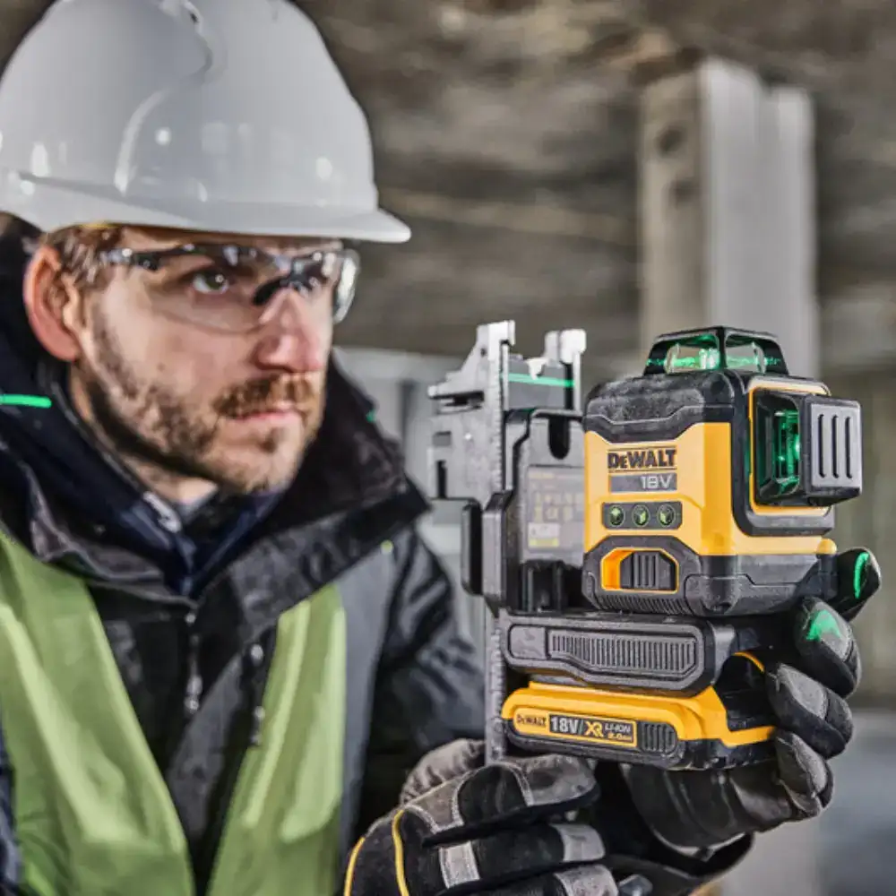 • Medidor Laser Autonivelante Verde 3 Linhas 360º Dewalt com compatibilidade total com as baterias da série de ferramentas elétricas 18V XR.