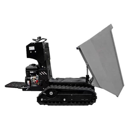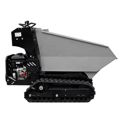 O Mini Dumper de Lagartas tem uma propulsão hidrostática, e a sua gamela basculante, permite ser manejada hidraúlicamente. Graças à tecnologia de última geração, e à utilização de materiais de primeira qualidade, temos um equipamento bastante robusto, rápido e versátil. Aliado a tudo isto, temos uma série de funcionalidades, que distinguem este mini dumper de toda a concorrência, tais como: sistema de arranque elétrico do motor, plataforma para o operador que torna a máquina bastante confortável, hidráulico da gamela, rápido e eficaz, tamanho da gamela, bastante generoso, capacidade de carga (600kg),  e o baixo custo, fazem deste equipamento a melhor relação preço qualidade do mercado.