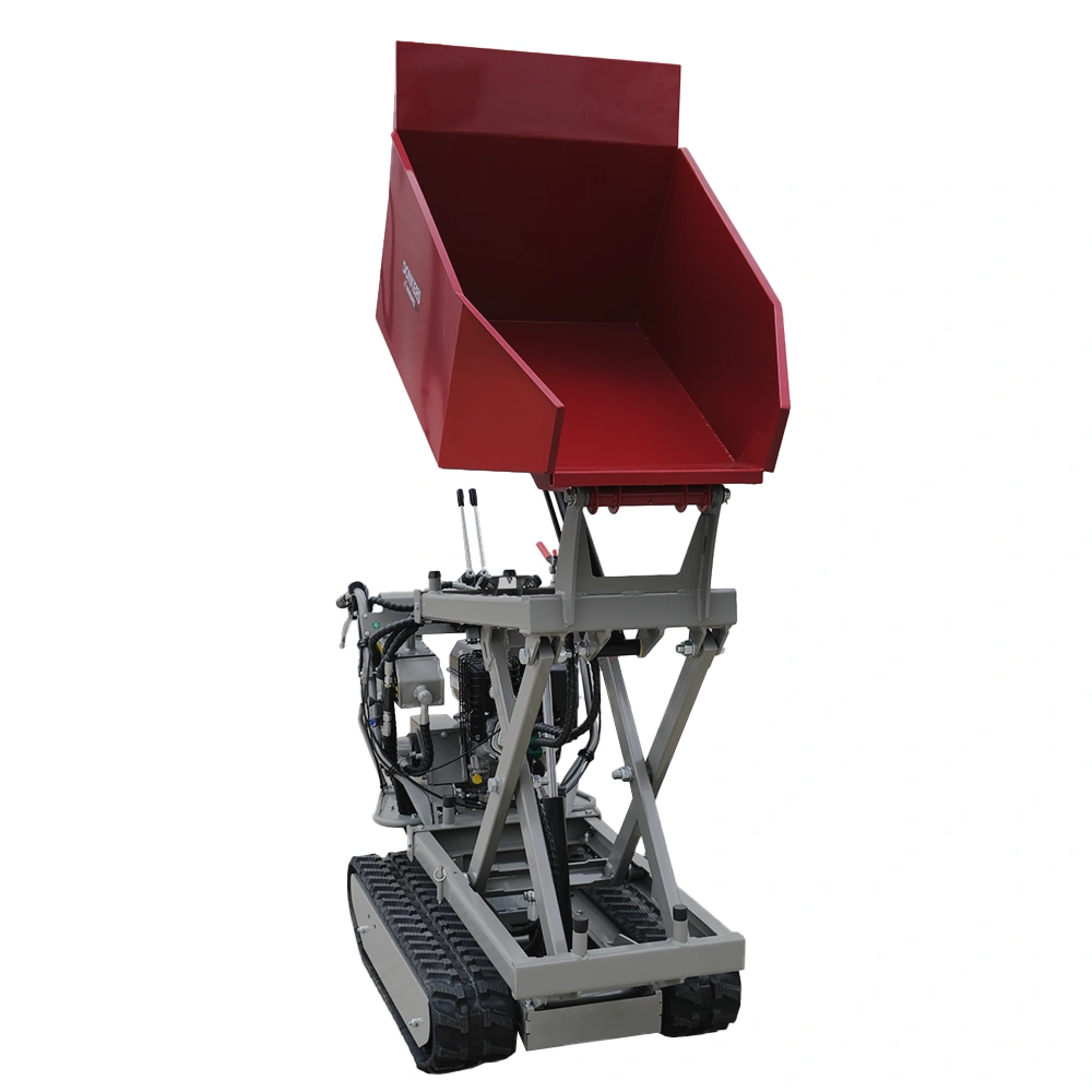 A sua potência assegura que o mini dumper consiga transportar cargas pesadas sem esforço, mantendo uma performance estável em mesmo terrenos irregulares.