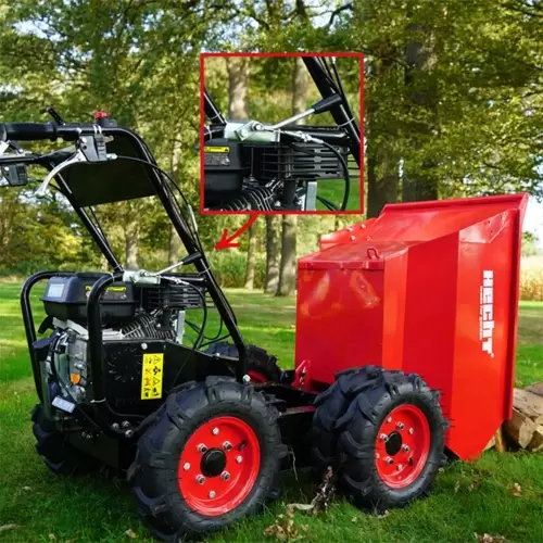 O transportador/Mini Dumper HCT 2650, pode ser usado com segurança em encostas com uma inclinação até 12°. A transmissão das mudanças é efetuada manualmente, e garante 3 mudanças para a frente e uma para trás, capaz de atingir uma velocidade até 6,5km/h.