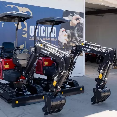 Mini Giratória Gasóleo Donker’s DK10 Premium de lagartas com rotatividade 360º e largura de lagartas ajustável para maior versatilidade no canteiro de obras.