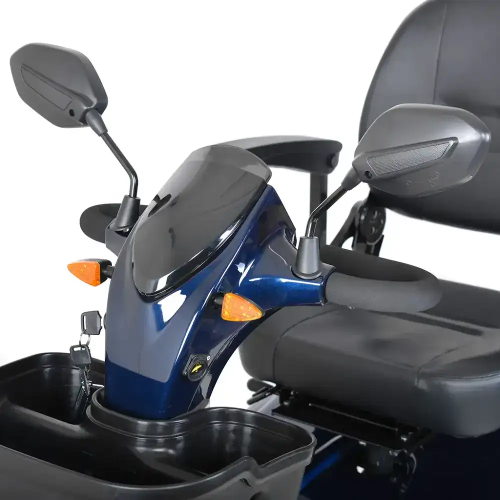 Dispõe de um assento confortável e giratório que facilita a entrada e saída. A condução é simples e intuitiva atraves dos controlos no guiador, tambem é possivel regular a velocidade máxima através de um botão rotativo.