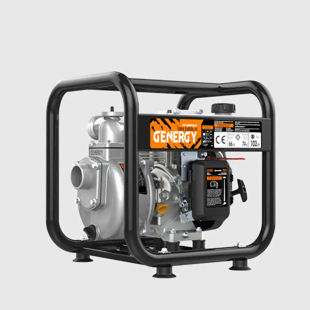 A Motobomba a Gasolina Genergy Turia 50 mm (2”) 149 cc é um equipamento robusto e eficiente, concebido para bombear grandes volumes de água de forma rápida e fiável. Com um caudal máximo de 35.000 litros por hora e uma altura máxima de elevação de 28 metros, é ideal para aplicações agrícolas, obras, combate a inundações ou transferência de água em reservatórios e tanques.