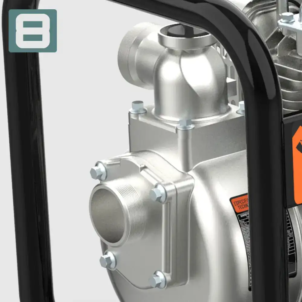 Equipada com um motor a gasolina de 4 tempos, 149 cc, esta motobomba oferece potência e fiabilidade constantes, garantindo um arranque rápido e um funcionamento suave. O seu design compacto e estrutura em aço reforçado proporcionam elevada durabilidade e resistência a ambientes exigentes, enquanto o sistema de proteção contra falta de óleo assegura maior vida útil do motor.