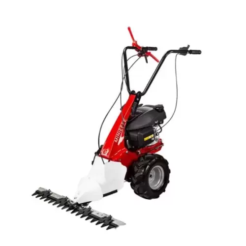 Transporte sem dificuldade a Motoceifeira Minieffe Eurosystems. A transmissão por correia entre o motocultivador e alfaia pente ceifeira permite que Ceifeira seja movida com o pente travado. Ajuste a profundidade do trabalho. A altura de corte da Motoceifeira Minieffe Eurosystems pode variar entre os 2,5 a 5 cm.